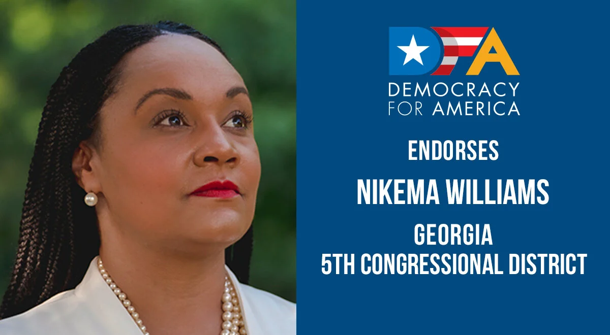 “Democracy for America is honored to stand Nikema Williams in her race for Georgia’s 5th Congressional district, and we look forward to fighting alongside her through November and beyond.” -- Yvette Simpson, CEO, Democracy for America