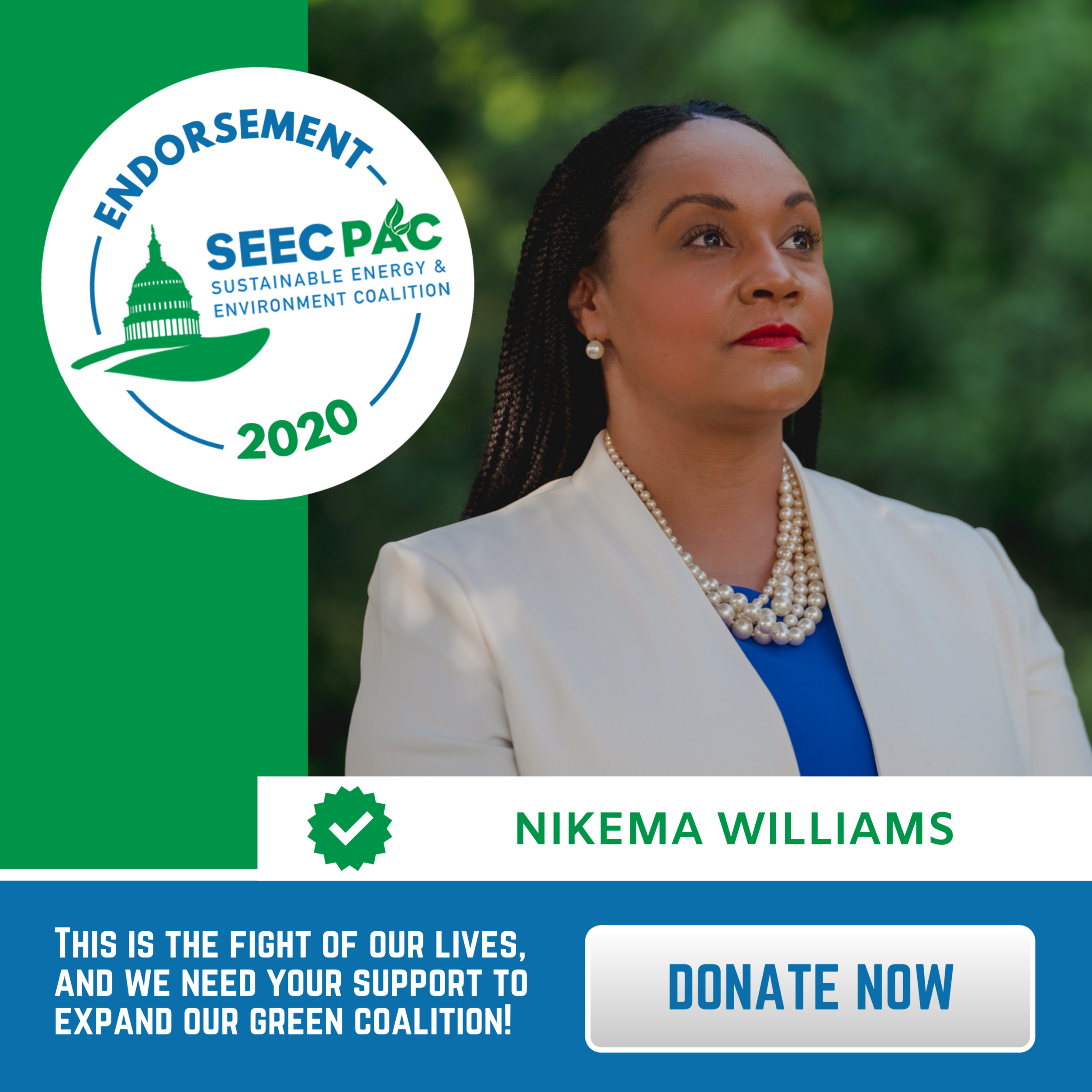 SEEC PAC: "SEEC PAC is proud to endorse Nikema Williams for Congress because of her clear commitment to addressing the climate crisis and protecting the planet for future generations. We know she would be a dedicated advocate for sustainability in the U.S. House of Representatives, and we look forward to supporting her campaign."